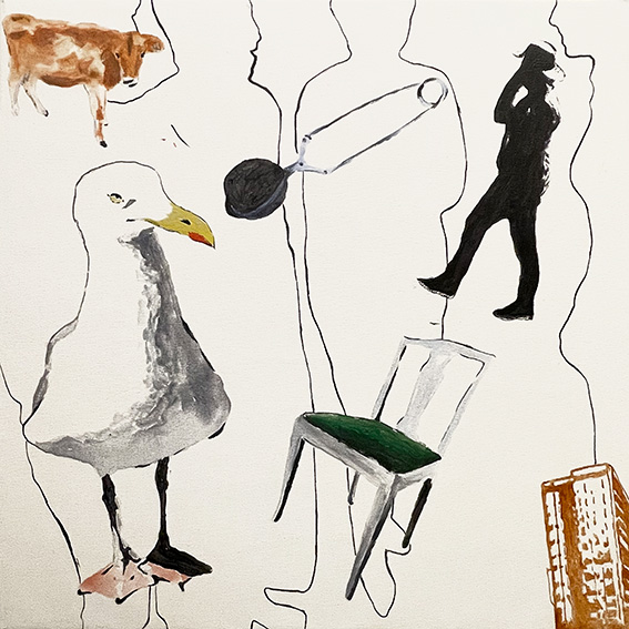 Avleda, Akryl, 50 x 50 cmÖvertyga, Akryl, 50 x 50 cmVänta, Akryl, 50 x 50 cmSe och hör, Akryl, 41 x 33 cmRåd och rön, Akryl, 41 x 33 cmMått och steg, Akryl, 41 x 33 cmHumanisten, Akryl, 50 x 50 cmPublicisten, Akryl, 50 x 50 cmGymnasisten, Akryl, 50 x 50 cmJournalisten, Akryl, 50 x 50 cmMinistern, Akryl 50 x 50 cmGitarristen, Akryl 50 x 50 cmFaktiskt, Akryl, 100 x 90 cmÄndå, Akryl, 100 x 90 cmLikväl, Akryl, 41 x 33 cmTrots allt, Akryl, 41 x 33 cmSamtidigt, Akryl, 50 x 50 cmDärför, Akryl på duk, 100 x 130 cmSom om, Akryl på duk, 50 x 70 cmI allmänhet, Akryl på duk, 100 x 130 cmEmellertid, Akryl på duk, 50 x 50 cmEftersom, Akryl på duk, 50 x 50 cmDe uteblivna samtalen, Akryl på duk, En bild i tre delar, 100 x 270 cm
