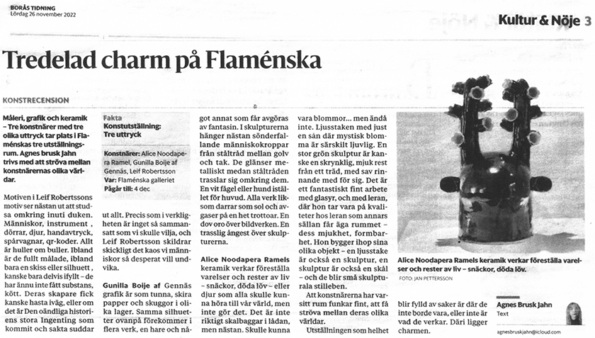 I live and work in Alingsås, Sweden. My art is about ”Life, as it appears”.